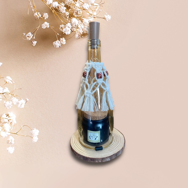 inklusive Untersetzer- Holzscheibe, Korken-Lichterkette, handgeknüpften Makramee und GlowZone Duftkerze 110 ml